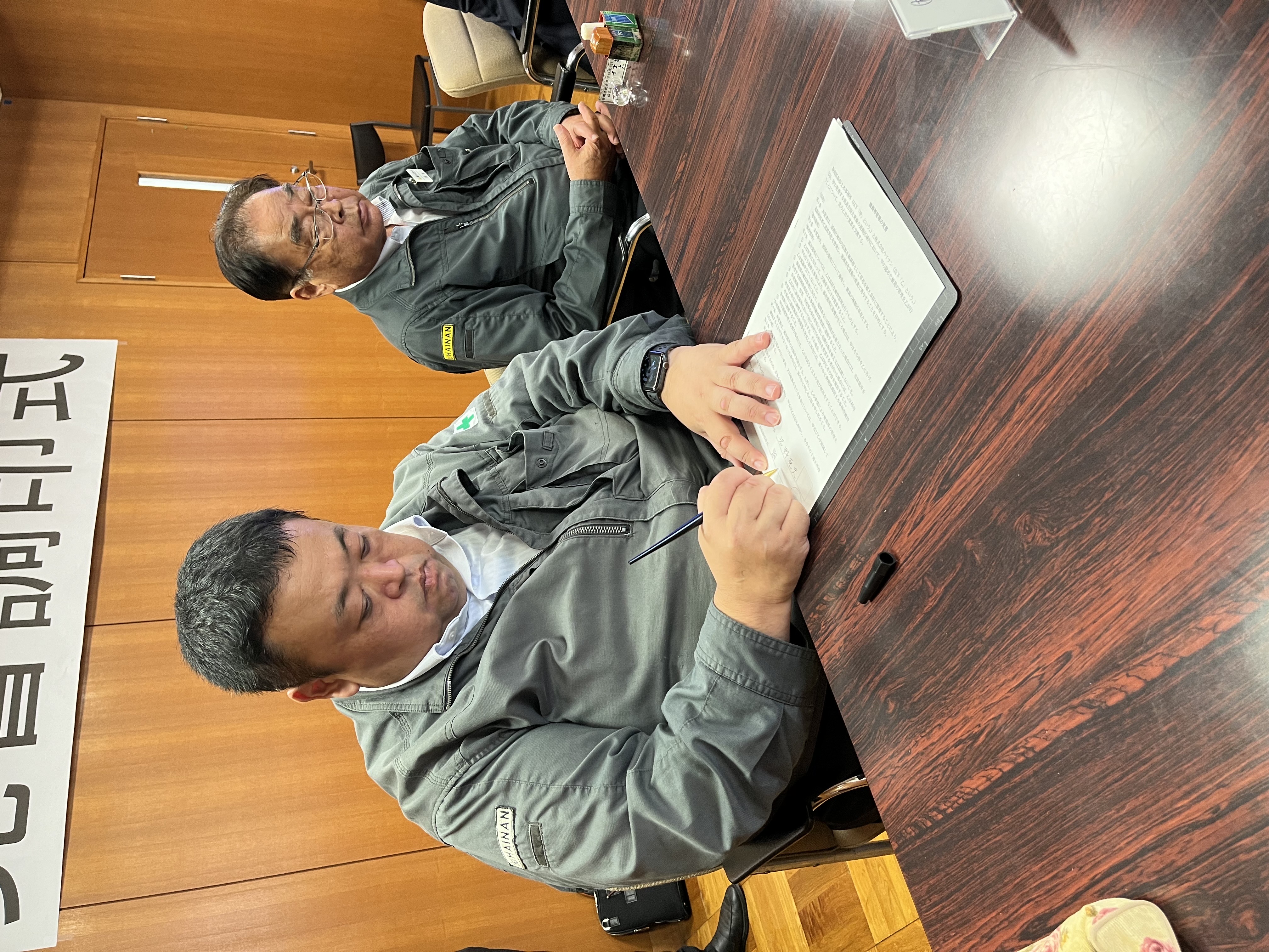 リサイクルプラント総合受付事務所前の県道吉田大東線の道路の一部を弊社が管理することになり、島田土木事務所様と覚書を取り交わしました。