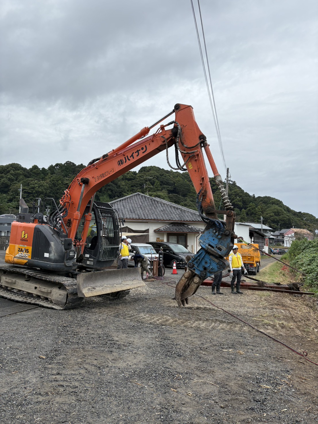今年も通勤時間帯を避けて作業を開始しましたが、道路脇の作業なので三角コーンを置き、車両誘導係りは通行車両の誘導をしながら作業を行ないました。