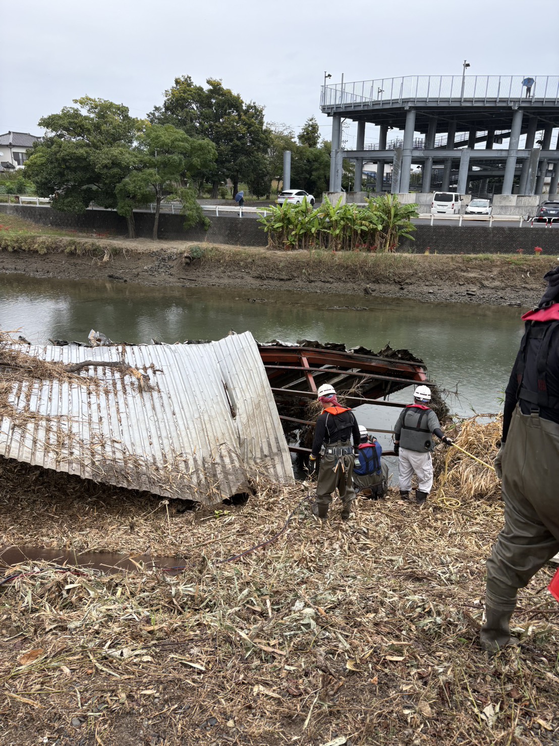 道路脇の竹は通行の障害にならないように切り倒しておき、側溝の土砂はスコップで取り除きました。
